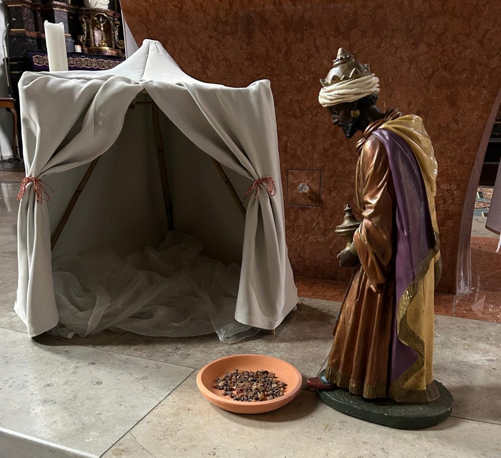 Vor dem König lag letzten Sonntag eine Schale mit Myrrhe – ein Zeichen für das Bittere und Schwere, das jeder von uns mitbringt. Unser Adventbild hat uns eingeladen, das nicht zu verdrängen, sondern ehrlich anzuschauen.